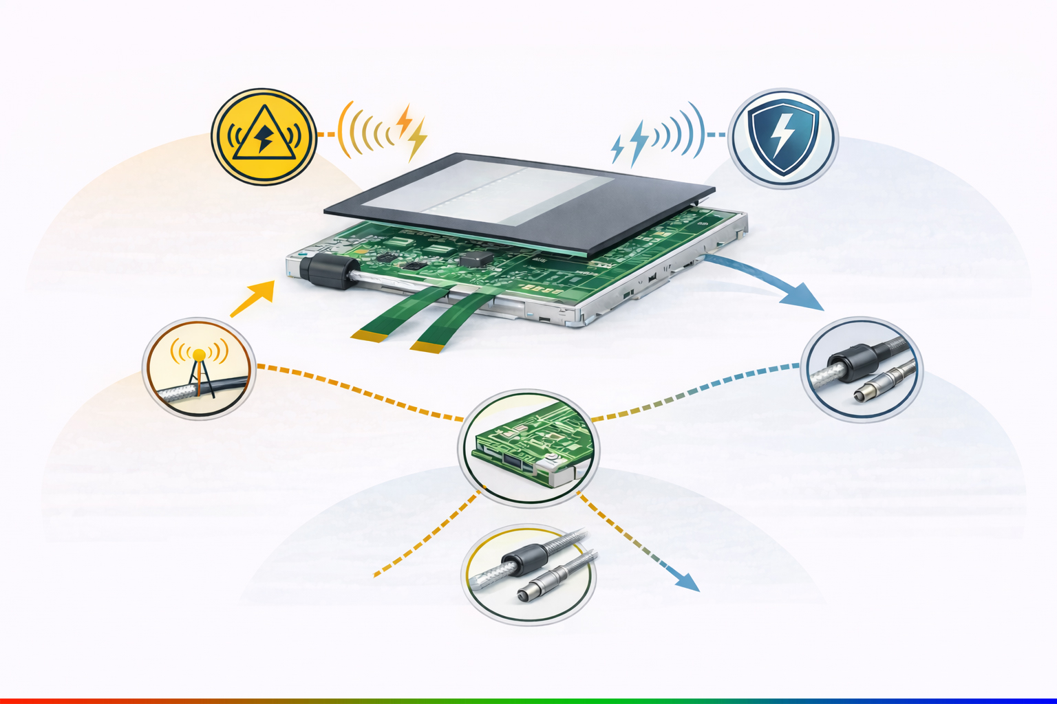 Die elektromagnetische Verträglichkeit (EMV) von Displays ist ein entscheidender Faktor für die zuverlässige Funktion elektronischer Systeme – besonders in Anwendungen wie Automobiltechnik, Medizintechnik, Industrieelektronik oder Luftfahrt. Displays fungieren nicht nur als Empfänger von elektromagnetischen Störungen (EMS), sondern auch als mögliche Störquellen. Mangelnde EMV-Massnahmen können zu Fehlfunktionen, Datenverlust oder Totalausfällen führen.
